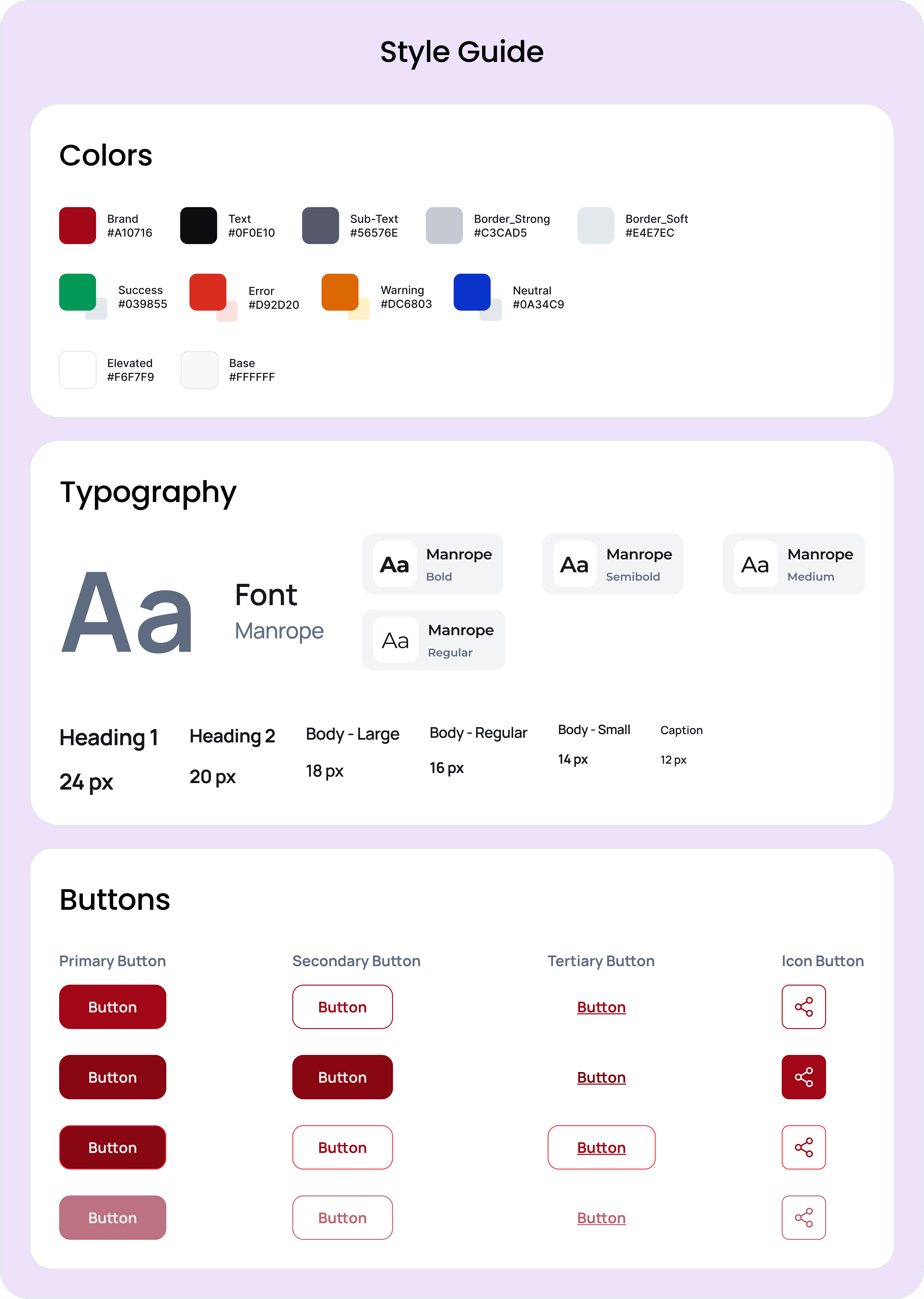 A consistent, warm visual system that builds trust. Clean typography, accessible colours, and simple components make the experience feel reliable and familiar everywhere.