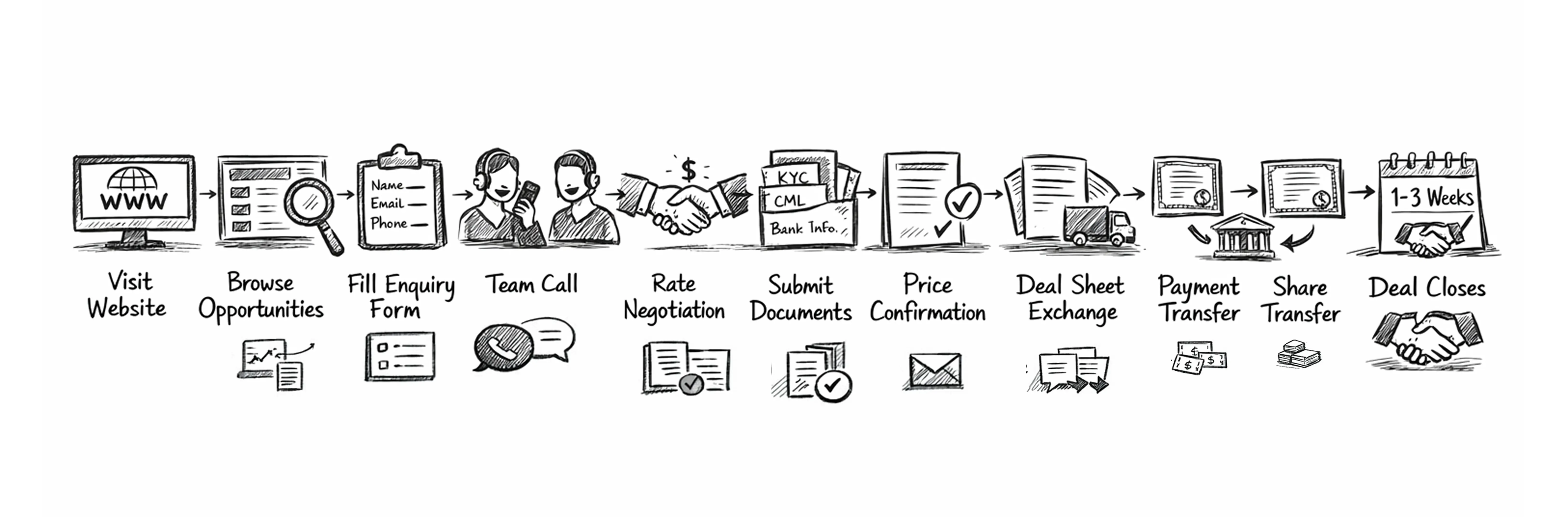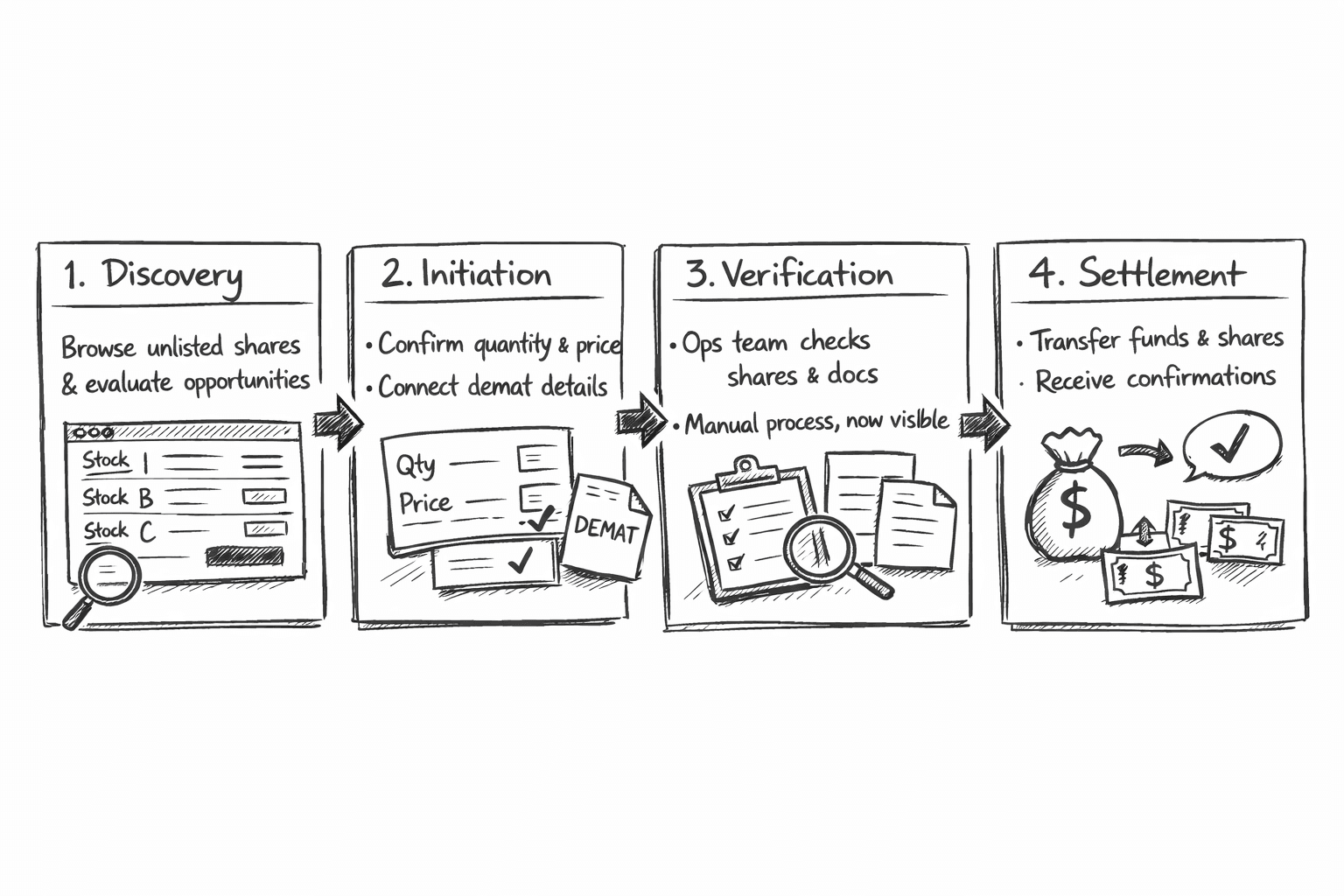 Buyers visit the platform to discover and invest in unlisted shares of private companies.
