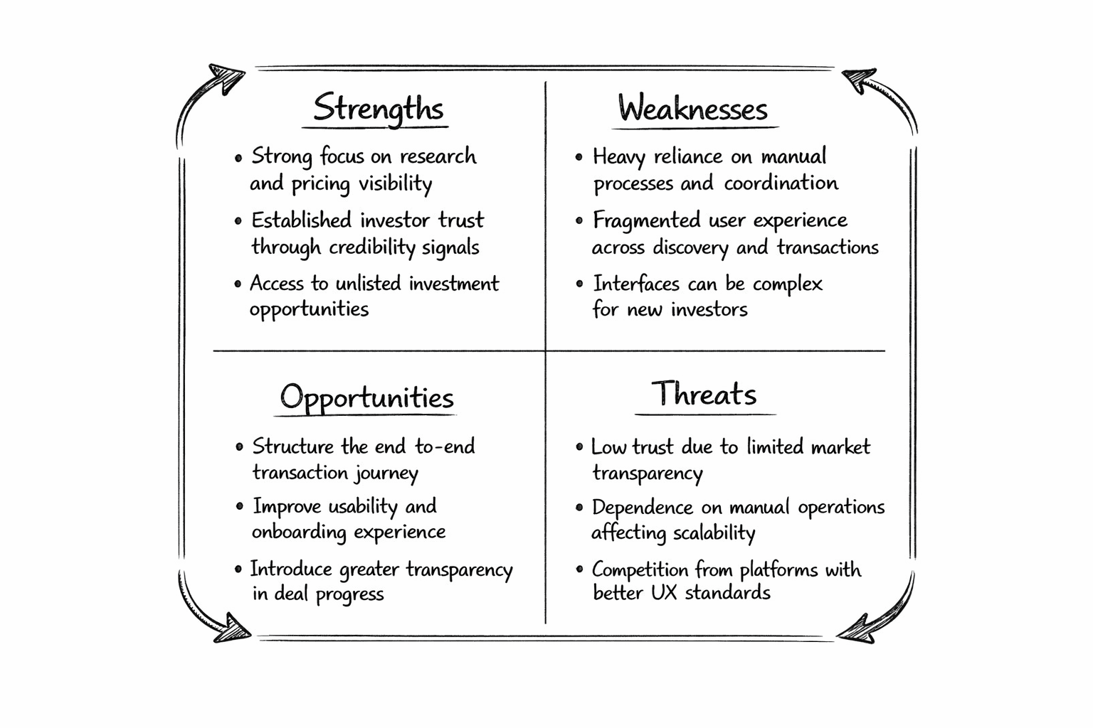 Unlisted stock transactions were being managed through manual processes, creating inefficiencies, delays, and limited transparency for both users and the business. Investors lacked a clear and structured way to explore opportunities, track transactions, and build confidence in their decisions. The absence of a centralized digital system made the overall experience fragmented and operationally dependent.